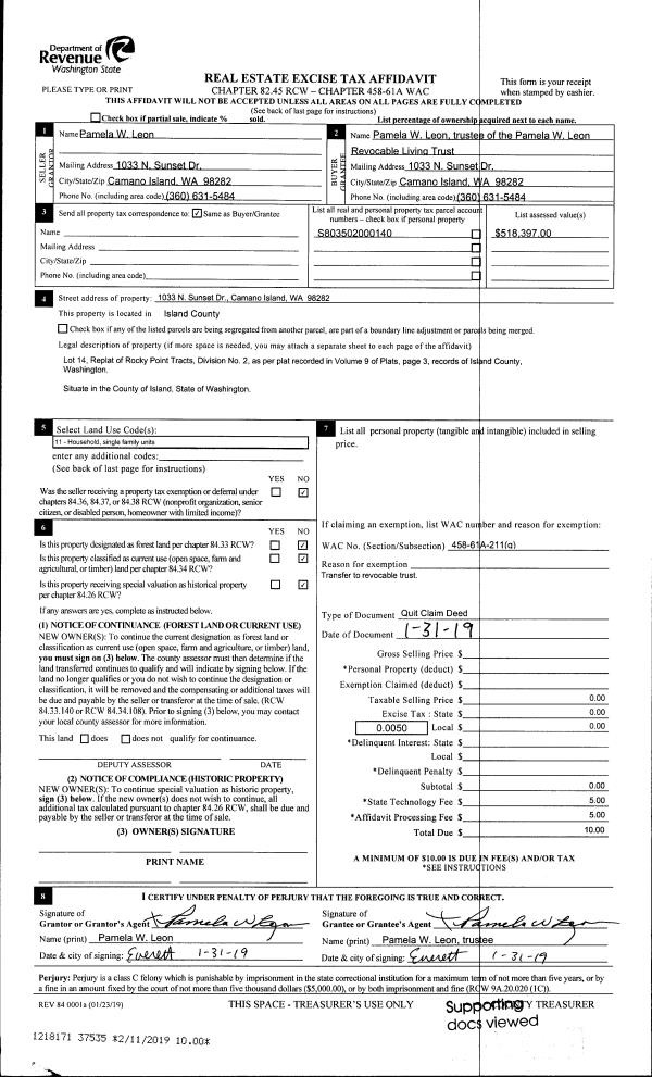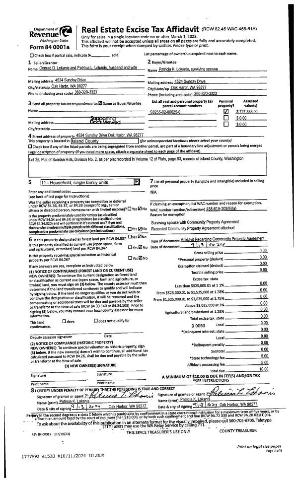 | Mailing Address: | JULIEN ADAMS 1308 BAKER COURT OAK HARBOR, WA 98277 | % Ownership: | 100.0000000000% |