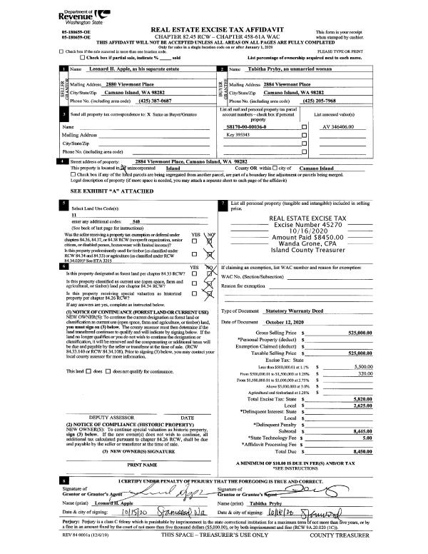 | 6 | 04/30/2003 | WD | Warranty Deed | TR CAMANO INC, | CONSTRUCTION, CEDARHOME | | | $45,000.00 | 31834 | 4054225 |
