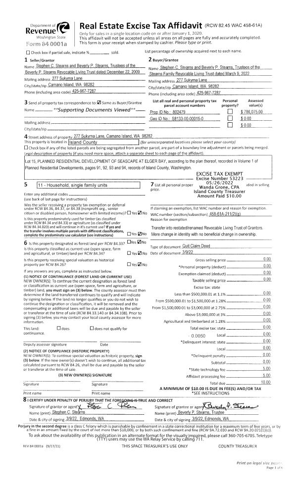 | 3 | 04/24/1998 | ESTSEPPROP | Establish Separate Property | TR CAMANO INC, | TR CAMANO INC, | | | $0.00 | 91397 | 99009254 |