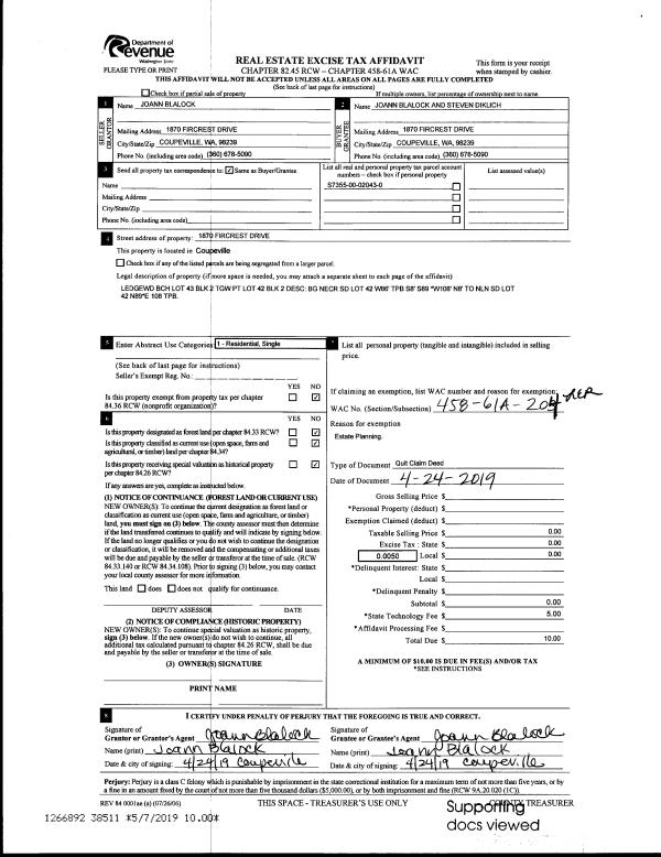 | Mailing Address: | 1159 ROLLING DR CAMANO ISLAND, WA 98282 | % Ownership: | 100.0000000000% |