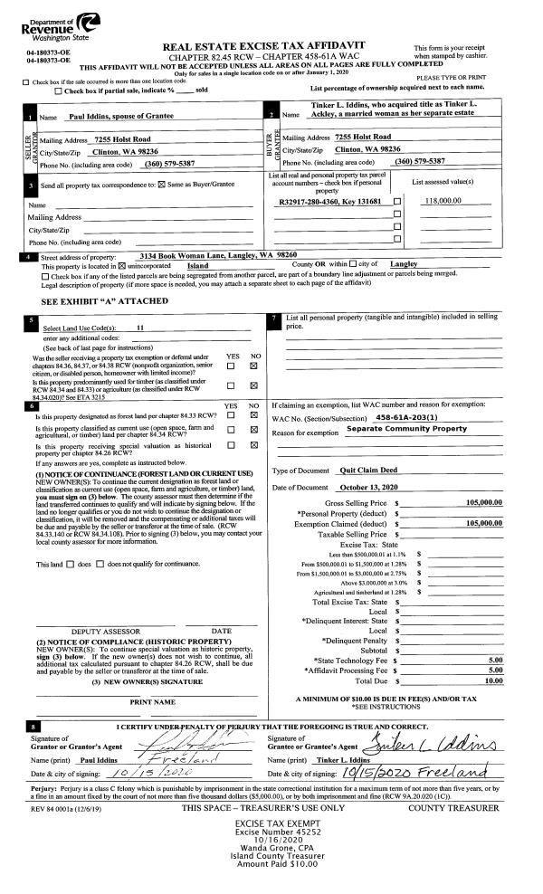 | Mailing Address: | SARAH A ANDERSON 1141 PORTAGE RD CAMANO ISLAND, WA 98282 | % Ownership: | 100.0000000000% |