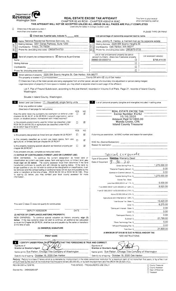 | Mailing Address: | 1167 PORTAGE RD CAMANO ISLAND, WA 98282-6504 | % Ownership: | 100.0000000000% |