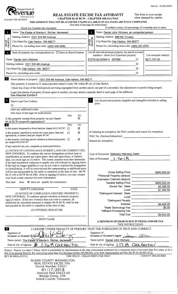 | Mailing Address: | JAMES F WHITFORD 1175 CENTRAL DR CAMANO ISLAND, WA 98282 | % Ownership: | 100.0000000000% |
