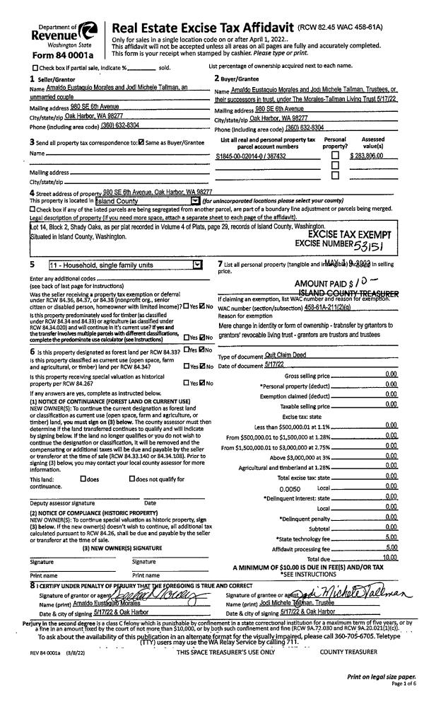 | Mailing Address: | 1182 ROLLING DR CAMANO ISLAND, WA 98282 | % Ownership: | 100.0000000000% |