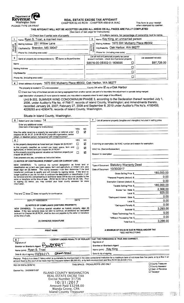 | 7 | 05/09/2002 | WD | Warranty Deed | OAK HARBOR ROTARY FOUNDATION, | BUSIG JR, GERALD L | | | $140,909.00 | 21810 | 4019943 |