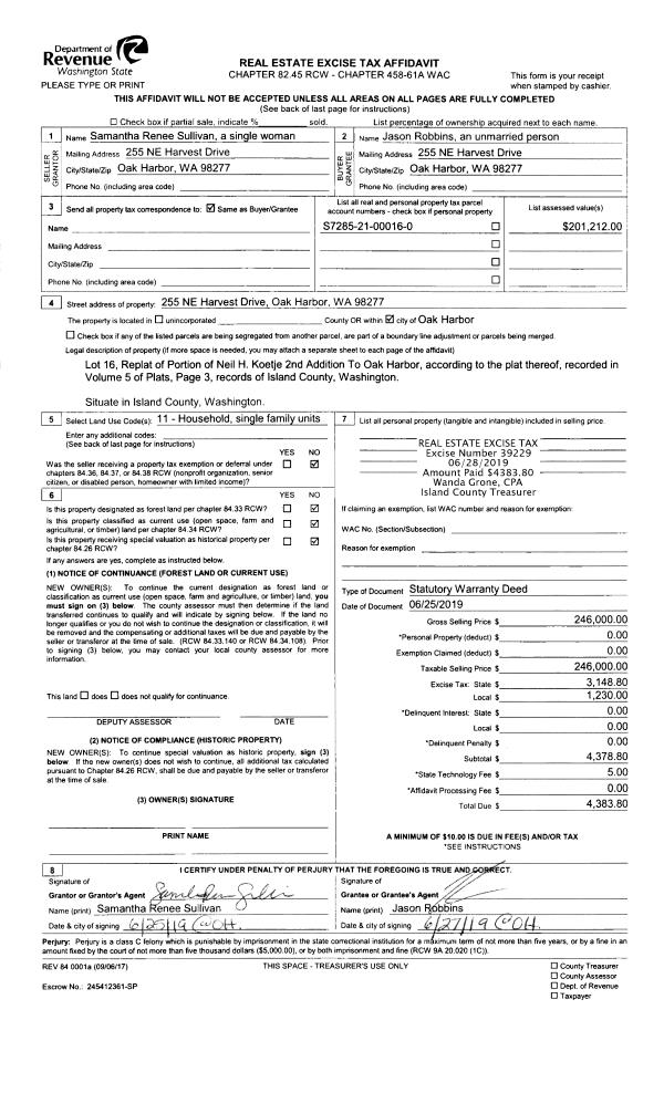 | Mailing Address: | 2937 TILLICUM BEACH RD CAMANO ISLAND, WA 98282 | % Ownership: | 100.0000000000% |