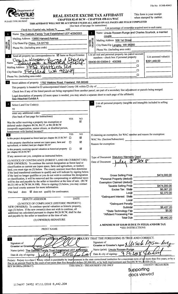 | Mailing Address: | RAYNA HAHN 695 TWIN VIEW DR GREENBANK, WA 98253 | % Ownership: | 100.0000000000% |