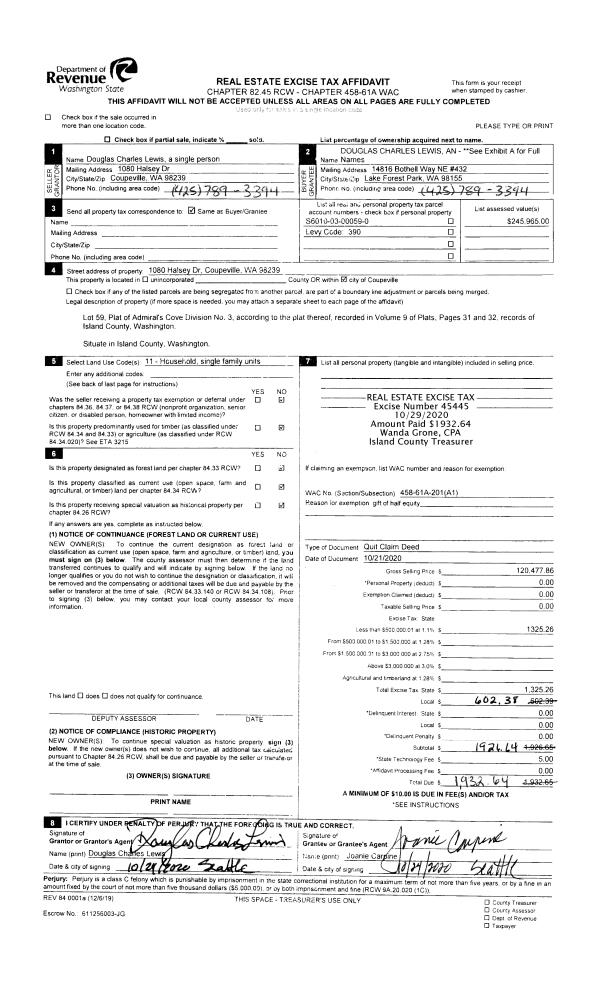 | 6 | 09/25/2008 | QCD | Quit Claim Deed | GERWE, VINCENT J | GERWE, MARK VINCENT | | | $0.00 | 82735 | 4238599 |