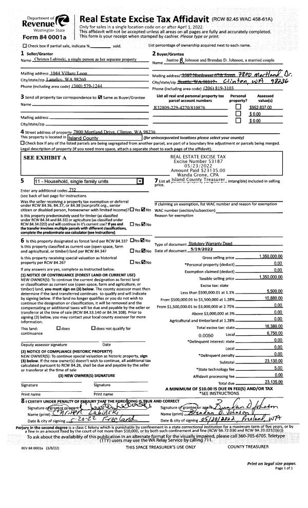 | Mailing Address: | 3348 S. SHORELINE DR CAMANO ISLAND, WA 98282 | % Ownership: | 100.0000000000% |