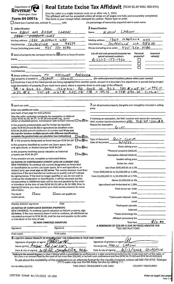 | Property ID: | 414046 | Abbreviated Legal Description: | TYEE BCH 2 LOTS 5 & 5A EX PT TO IS CO AF#4358279 |