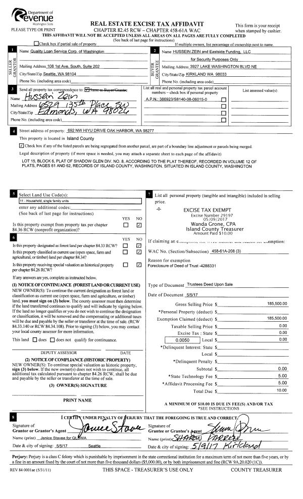 | Mailing Address: | CHERI ANN REICHLE 1944 NE SUMNER DR OAK HARBOR, WA 98277 | % Ownership: | 100.0000000000% |