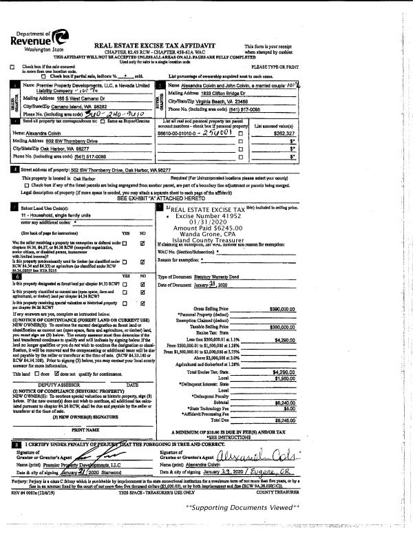 | Mailing Address: | LAURA A ERIKSON 2408 SOUNDVIEW DR LANGLEY, WA 98260 | % Ownership: | 100.0000000000% |