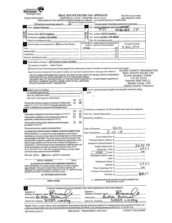 | Mailing Address: | 2486 SOUNDVIEW DR LANGLEY, WA 98260 | % Ownership: | 100.0000000000% |
