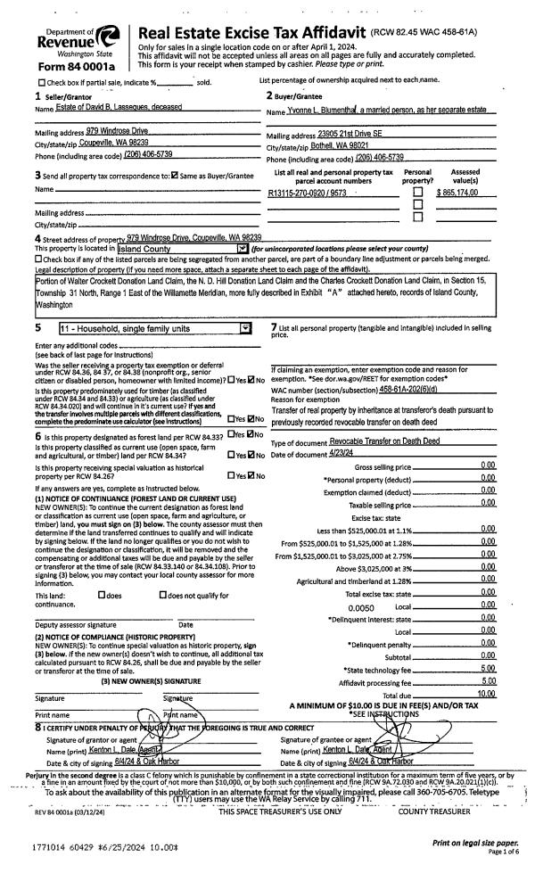 | Mailing Address: | TIFFANY M SCRIBNER 45 NE NUNAN LOOP OAK HARBOR, WA 98277 | % Ownership: | 100.0000000000% |