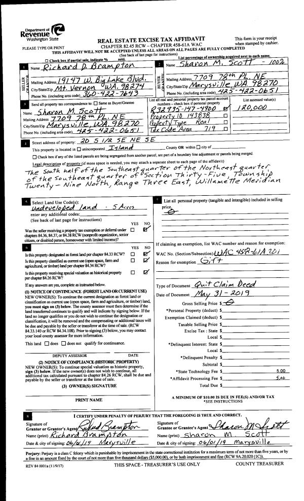 | Mailing Address: | SUSAN F ROBINSON 2343 DISCOVERY PLACE LANGLEY, WA 98260 | % Ownership: | 100.0000000000% |