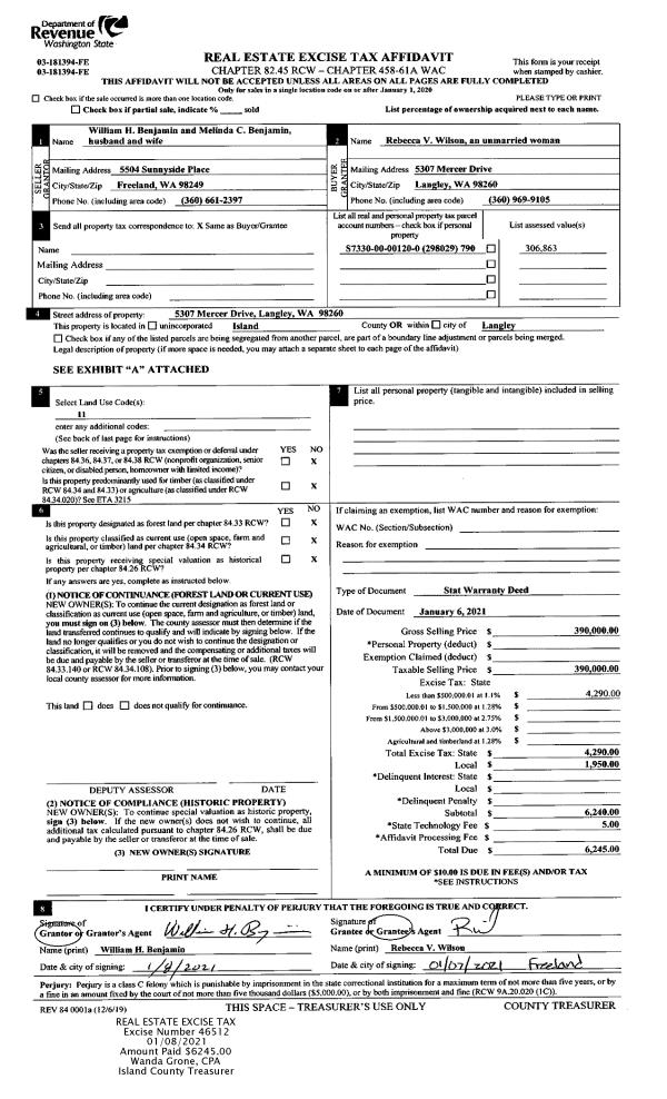 | Mailing Address: | KIMBERLY M FRANSSEN 477 RICHARD RD OAK HARBOR, WA 98277-9615 | % Ownership: | 100.0000000000% |