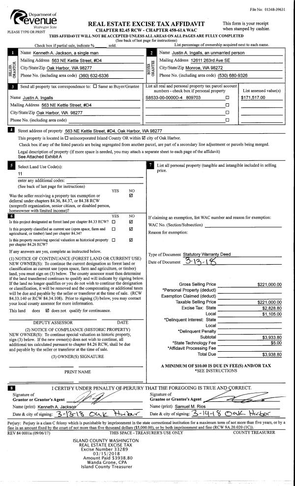 | Mailing Address: | CAROL GRANT 2340 DISCOVERY PL LANGLEY, WA 98260 | % Ownership: | 100.0000000000% |