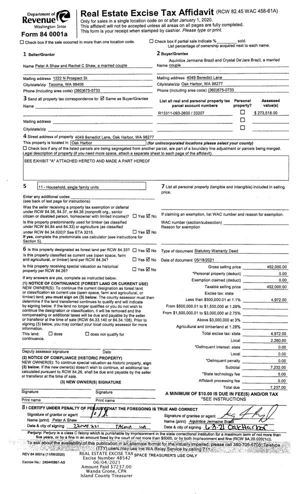 | Mailing Address: | 2315 SOUNDVIEW DR LANGLEY, WA 98260 | % Ownership: | 100.0000000000% |
