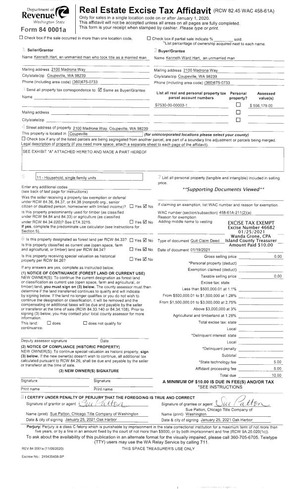 | Mailing Address: | 11603 EAST OAKMONT DR MUKILTEO, WA 98275 | % Ownership: | 100.0000000000% |