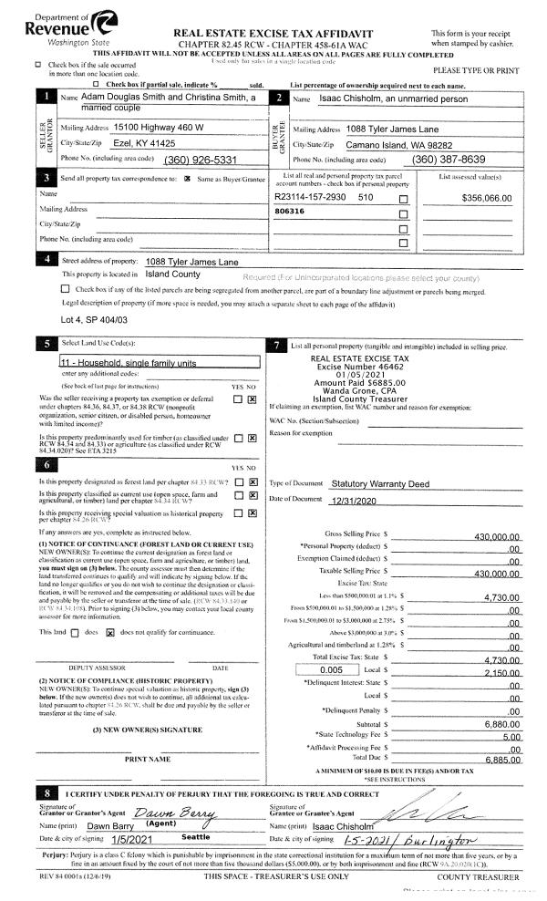 | Mailing Address: | 5876 CAPT VANCOUVER DR LANGLEY, WA 98260-9746 | % Ownership: | 100.0000000000% |