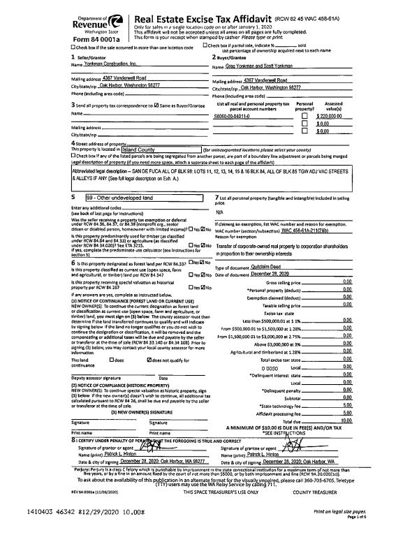 | Mailing Address: | PO BOX 606 FREELAND, WA 98249 | % Ownership: | 100.0000000000% |
