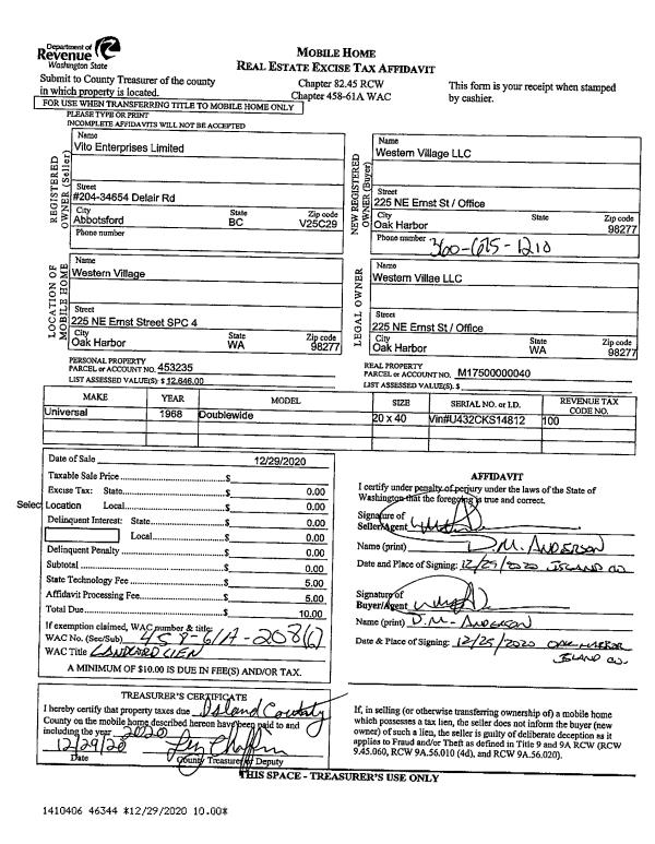 | Mailing Address: | 5810 DEER LAGOON RD LANGLEY, WA 98260-9750 | % Ownership: | 100.0000000000% |
