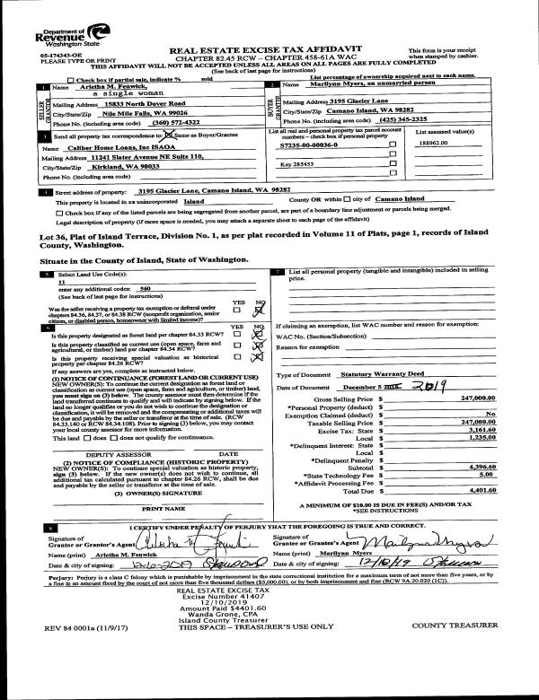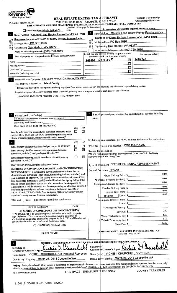 | 2 | 03/22/2018 | TTAXD | Treasurer's Tax Deed | ISLAND COUNTY TAX TITLE | ISLAND COUNTY TAX TITLE | | | $0.00 | 33370 | 4441229 |