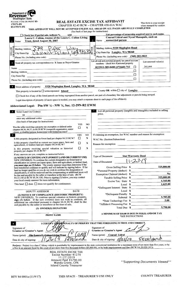 | Tax Area: | 710 - APPRAISER-S Whid Schl Dist, outside Langley, improved & 1 acre or less | Land Use Code | 11 |