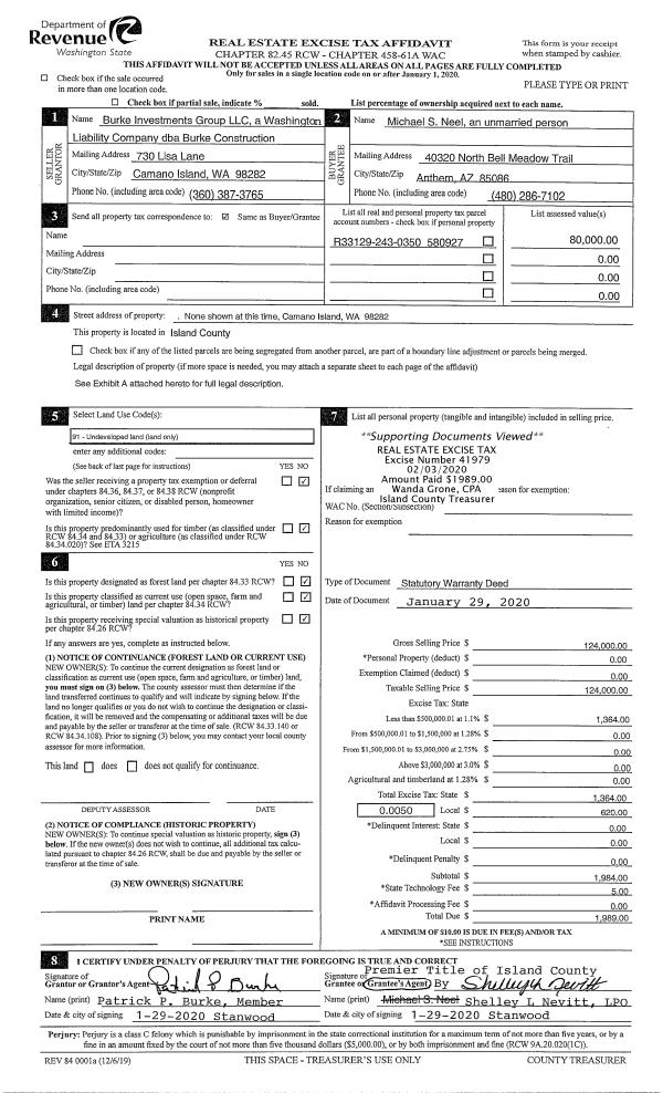 | Mailing Address: | JULIE A SKINNER 2496 DISCOVERY PL LANGLEY, WA 98260 | % Ownership: | 100.0000000000% |