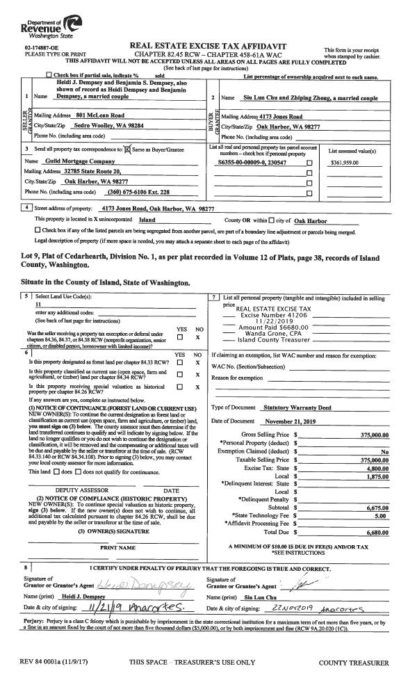 | 3 | 02/12/2018 | TTAXD | Treasurer's Tax Deed | H & H PROPERTIES, INC | ISLAND COUNTY TAX TITLE | | | $0.00 | 32922 | 4439086 |