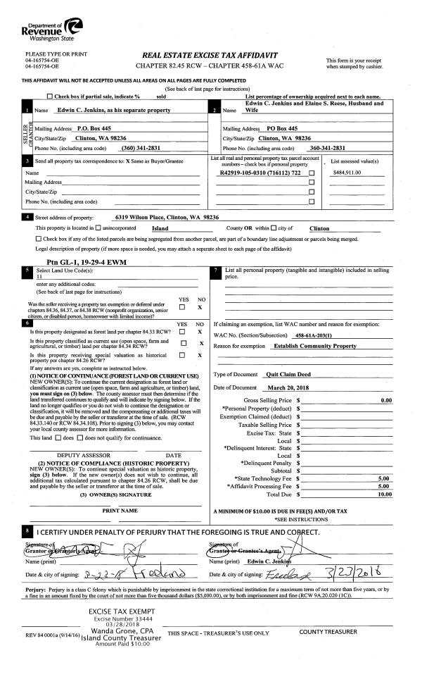 | 2 | 03/22/2018 | TTAXD | Treasurer's Tax Deed | ISLAND COUNTY TAX TITLE | ISLAND COUNTY TAX TITLE | | | $0.00 | 33370 | 4441229 |