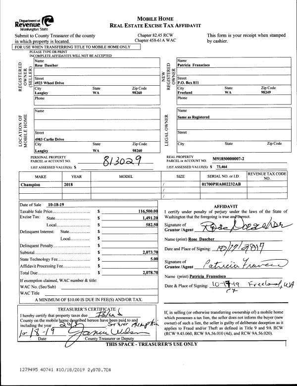 | Mailing Address: | 2563 HILLIS DRIVE LANGLEY, WA 98260 | % Ownership: | 100.0000000000% |