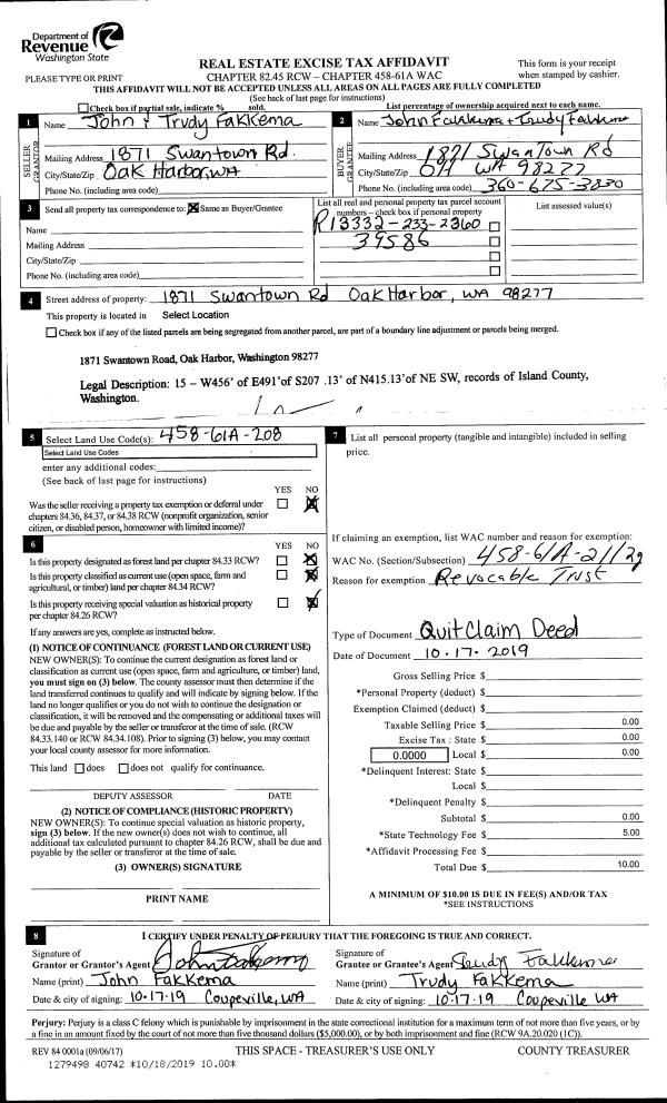 | Mailing Address: | DONALD C SHERRETT 2553 HILLIS DR LANGLEY, WA 98260 | % Ownership: | 100.0000000000% |
