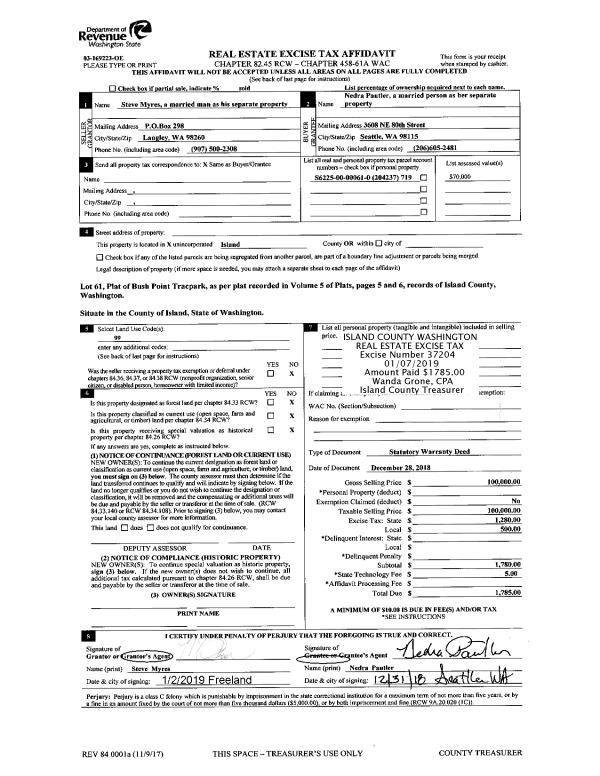 | Mailing Address: | 5640 MELENDY DR LANGLEY, WA 98260 | % Ownership: | 100.0000000000% |
