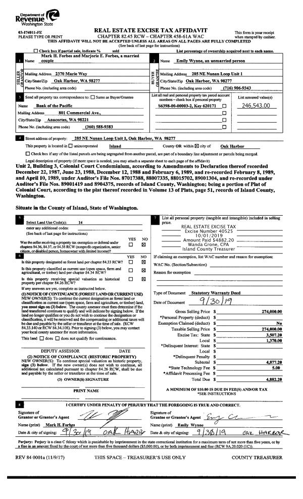 | Mailing Address: | 2446 HILLIS DR LANGLEY, WA 98260 | % Ownership: | 100.0000000000% |
