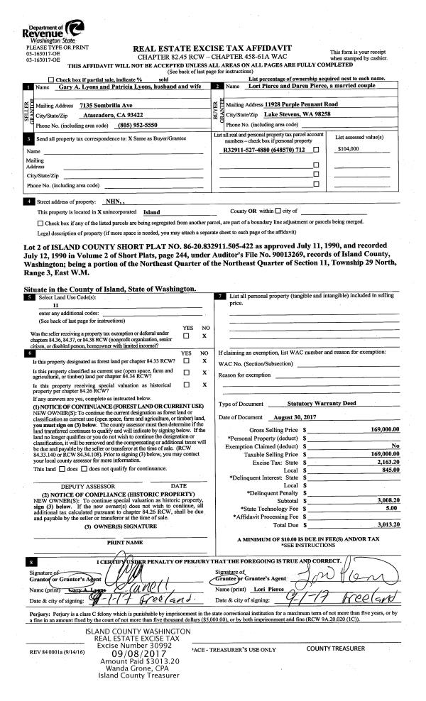 | 3 | 08/26/2011 | TRUSTEED | Trustee's Deed | BARRETT, JOHN | WHIDBEY ISLAND BANK | | | $0.00 | 5393 | 4300332 |