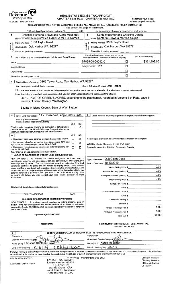 | 1 | 04/05/2025 | QCD | Quit Claim Deed | SCRIVEN, R LYNN | SCRIVEN TTEE, R LYNN | | | $0.00 | 63146 | 4584549 |