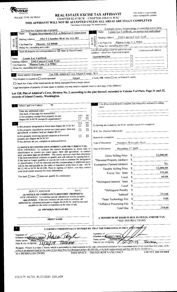 | Mailing Address: | 2576 MYRA PL LANGLEY, WA 98260 | % Ownership: | 100.0000000000% |