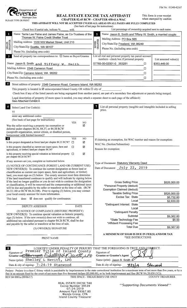 | Mailing Address: | LESLIE SERENA TAYLOR 1371 NE 6TH AVE OAK HARBOR, WA 98277 | % Ownership: | 100.0000000000% |
