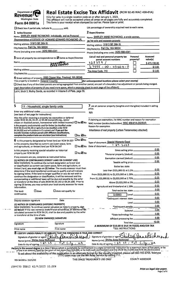 | Mailing Address: | 58 UTSALADY RD CAMANO ISLAND, WA 98282 | % Ownership: | 100.0000000000% |