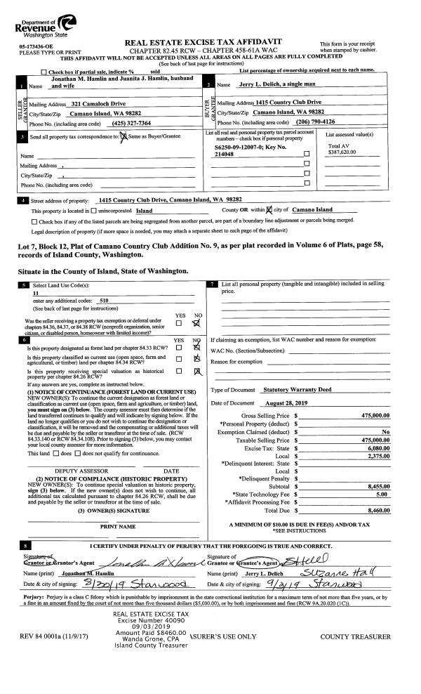 | 1 | 06/21/2019 | WD | Warranty Deed | UTSALADY BAY ESTATES LLC | SCHOONOVER, KEITH J | | | $480,000.00 | 39156 | 4466178 |