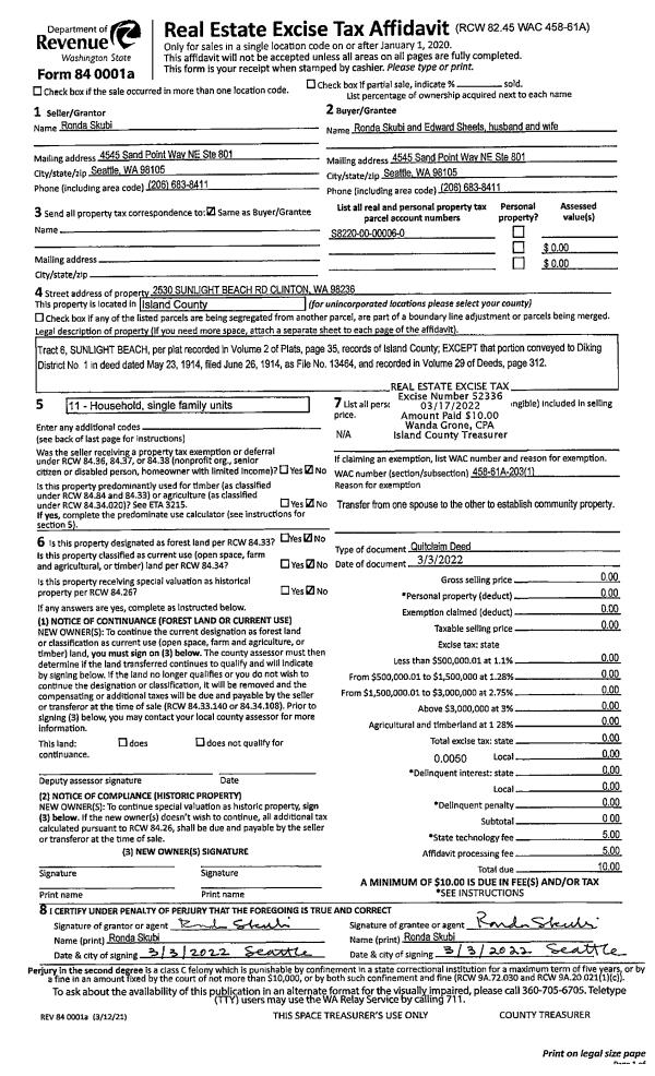 | Mailing Address: | 346 SHORE DR CAMANO ISLAND, WA 98282 | % Ownership: | 100.0000000000% |