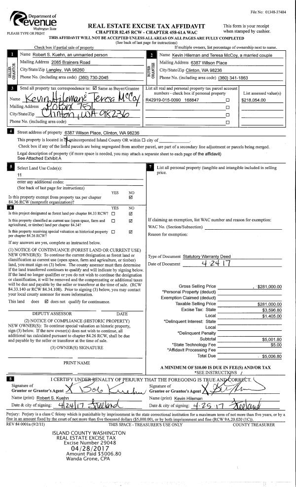 | Mailing Address: | 210 JUDY AVE BURLINGTON, WA 98233 | % Ownership: | 100.0000000000% |