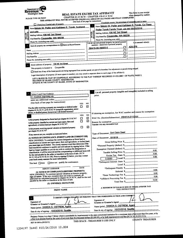 | Mailing Address: | 1115 GREENWOOD ST OAK HARBOR, WA 98277 | % Ownership: | 100.0000000000% |