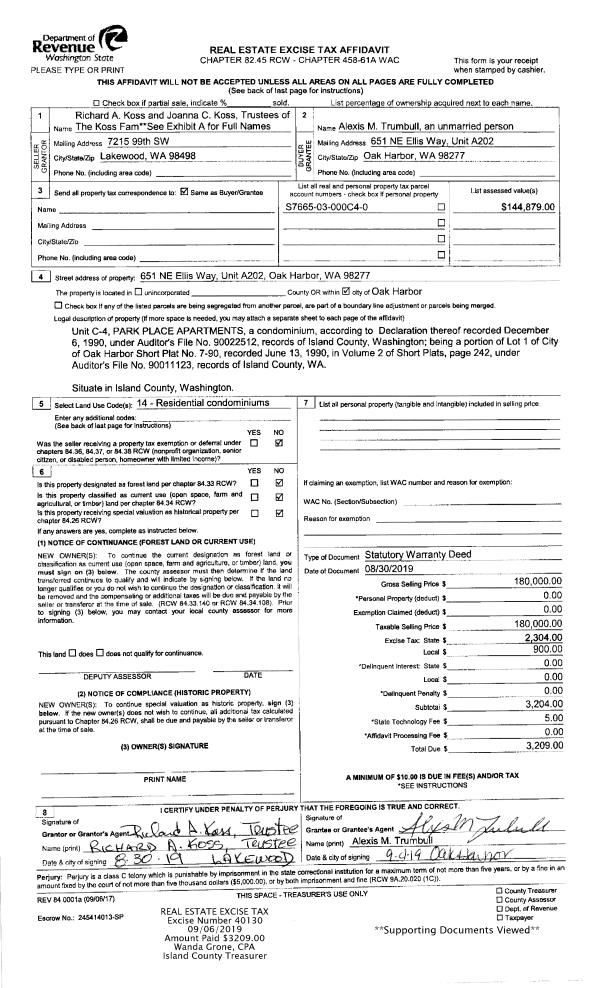 | Mailing Address: | 1151 RIDGEWAY DR OAK HARBOR, WA 98277 | % Ownership: | 100.0000000000% |