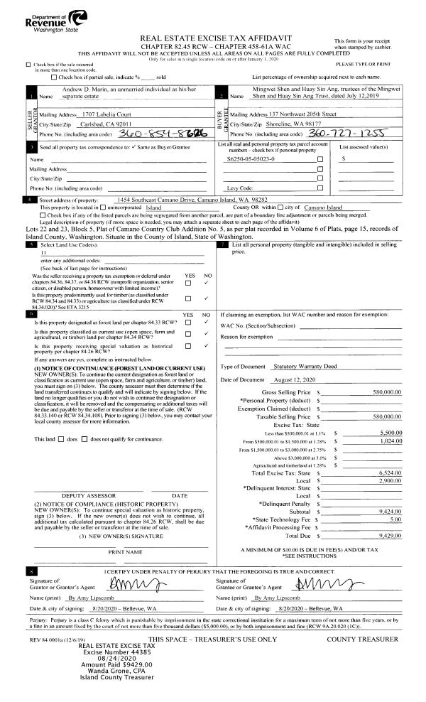 | Mailing Address: | LOT OWNERS 5960 S CEDAR ST FREELAND, WA 98249 | % Ownership: | 100.0000000000% |