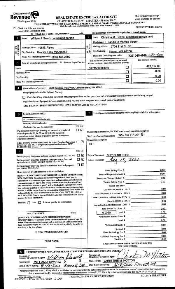 | Mailing Address: | 245 E SQUIRE RD COUPEVILLE, WA 98239-4087 | % Ownership: | 100.0000000000% |