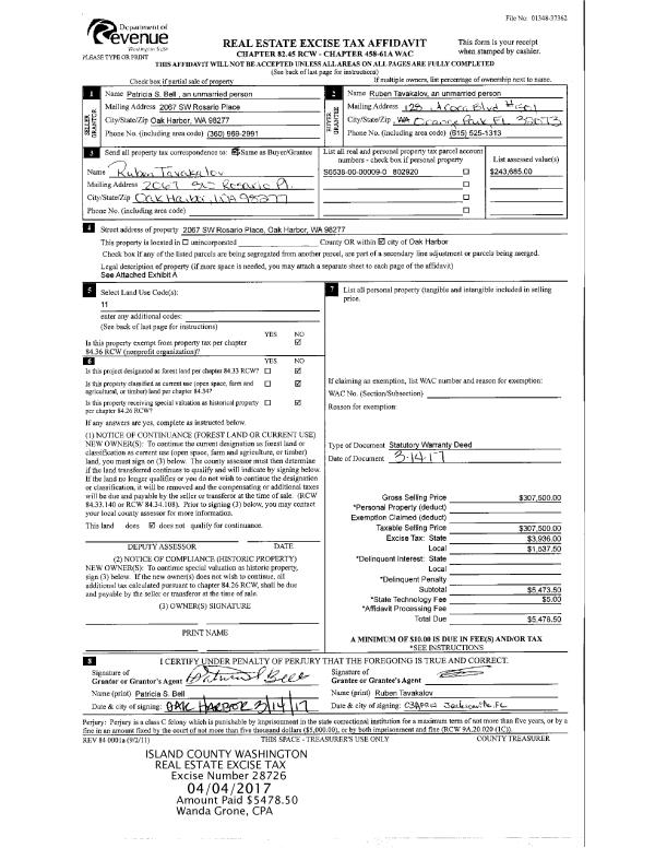 | Mailing Address: | TERESA HERMOSILLO PETERSON 2362 FAIRWAY LN OAK HARBOR, WA 98277 | % Ownership: | 100.0000000000% |