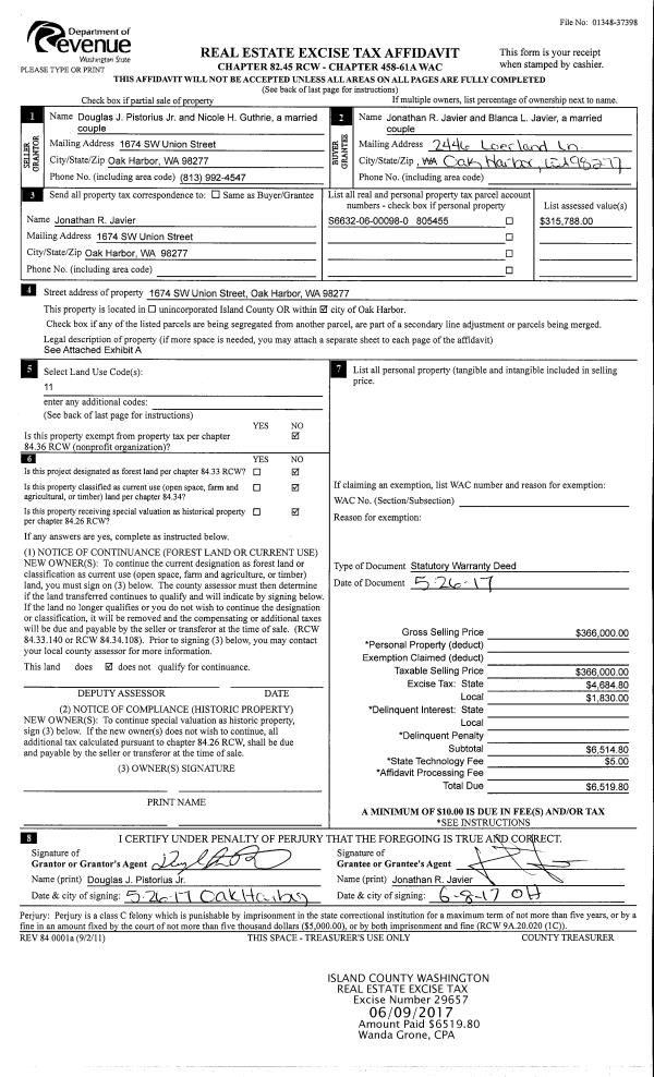 | Mailing Address: | LYNDA K GUEITS 2258 FAIRWAY LN OAK HARBOR, WA 98277 | % Ownership: | 100.0000000000% |