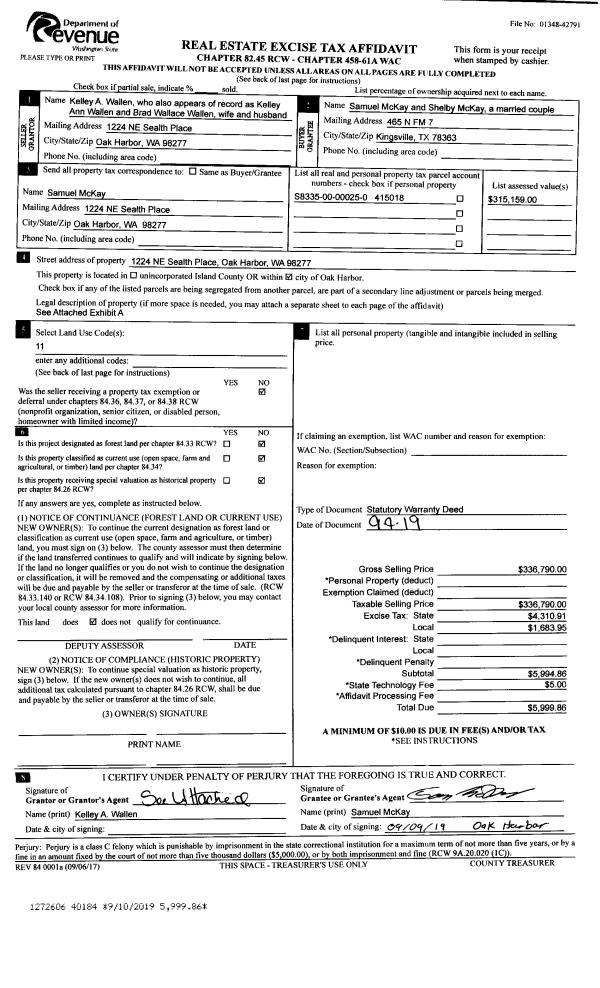 | Mailing Address: | 721 HUGHES ALY OAK HARBOR, WA 98277 | % Ownership: | 100.0000000000% |